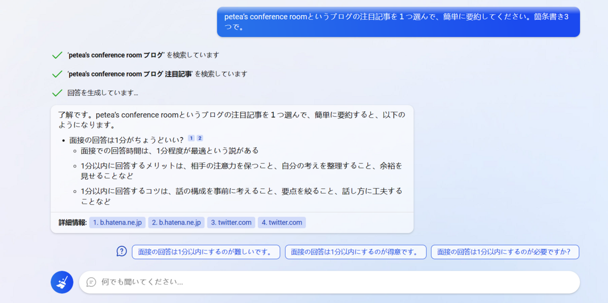 Bingに自分のブログ記事を要約させて、要約が私の要約と比較したいのです。